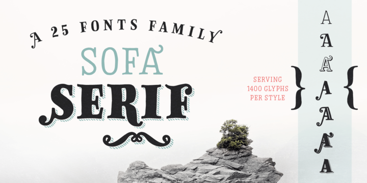 Sofa Serif’s handcrafted character is friendly and eye-catching. Stylish features and alternates add personality and let you create unique logos and stunning headlines. The family boasts 5 weights from Monoline to Fat, each containing more than 1000 glyphs, plenty of OpenType features and full ISO latin 1 & 2 language support. In addition, extra shadow-, 3D-, inline- and hatched-styles round out the package. 7 font-styles are especially created to be used as layers/layered styles.